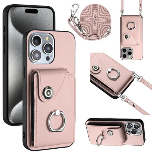 Funda para Teléfono iPhone 13 Pro Max con Soporte para Anillo y Bolsa para Tarjeta con Cordón Largo (Rosa)