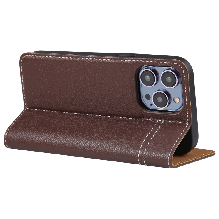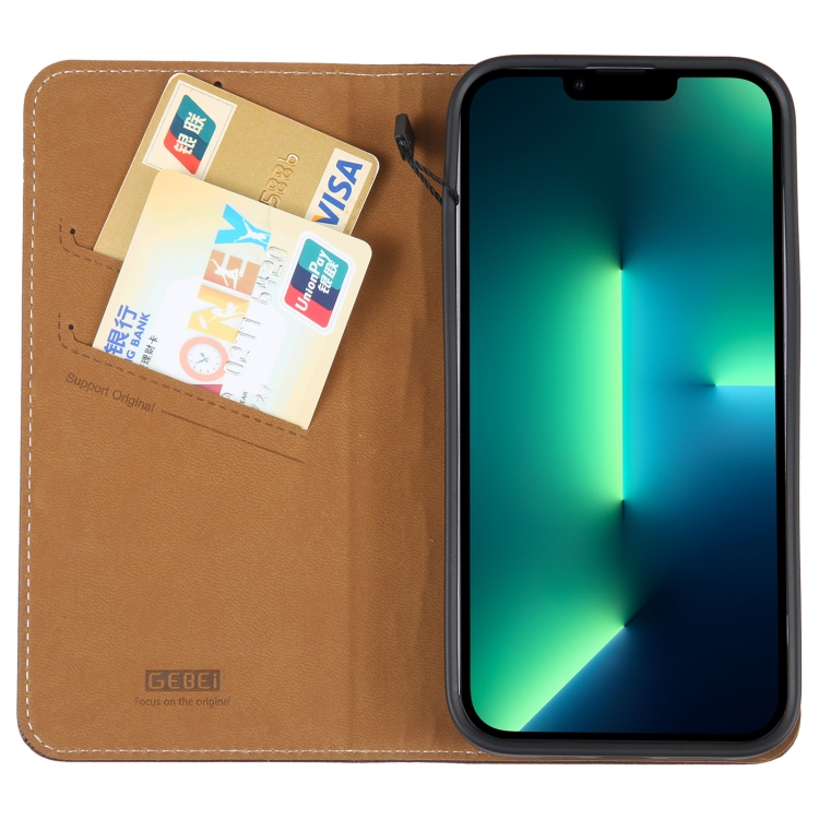 Estuche para Teléfono Gebei iPhone 13 Pro Max Cuero con Tapa Horizontal de Grano Superior (Marrón)
