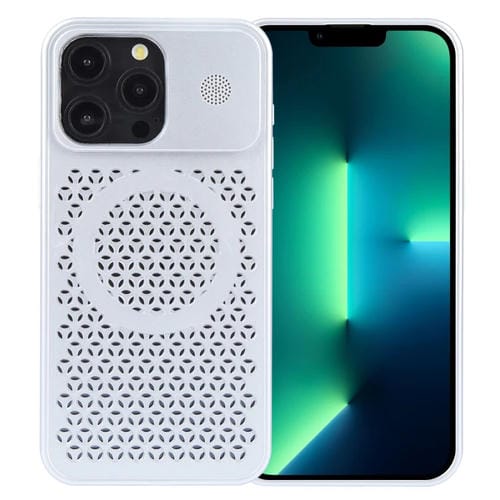Funda para Teléfono iPhone 13 Pro Max Pure Color Honeycomb Aromatherapy Magsafe (Plata)