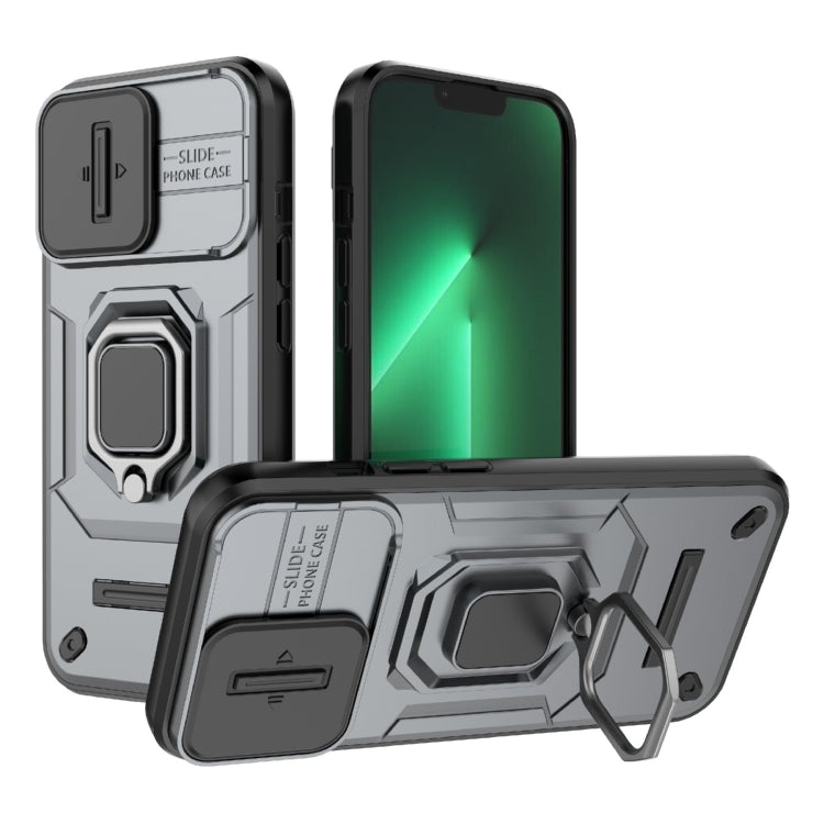 Estuche para Teléfono iPhone 13 Pro Sliding Camshield TPU + PC a Prueba de Golpes con Soporte (Gris)