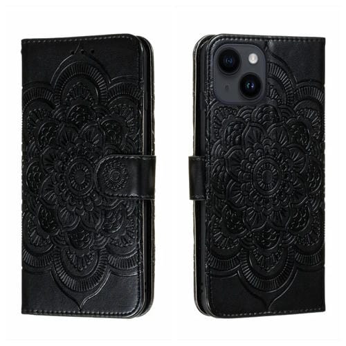 Funda para Teléfono Apple iPhone 14 / 13 Sun Mandala Cuero En Relieve (Negro)