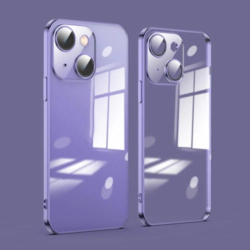 Protector Lente de Vidrio para iPhone 14 a Prueba de Polvo Galvanoplastia (Púrpura)