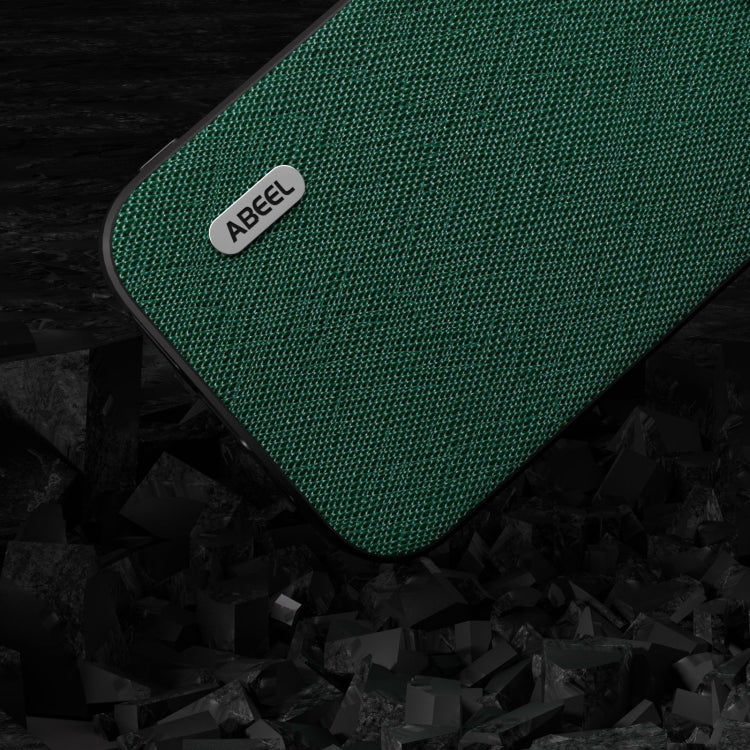 Funda de teléfono Abeel para iPhone 14 cuero genuino Cross Texture (Verde)