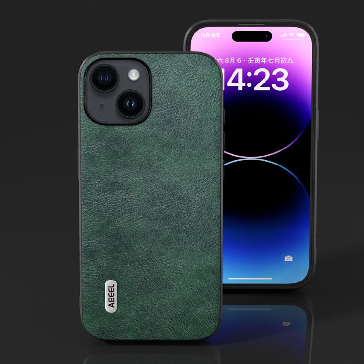 Funda para iPhone 14 Abeel Dual Color Lichi Texture PU Phone Case (Verde)