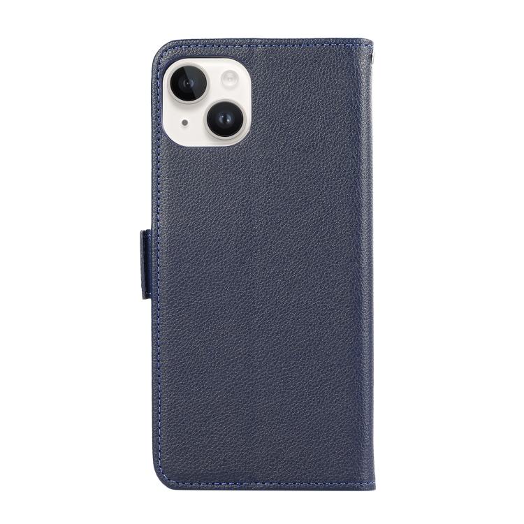 Funda para Teléfono Abeel iPhone 14 Cuero Patrón de Litchi Rfid Magnético Lateral (Azul)