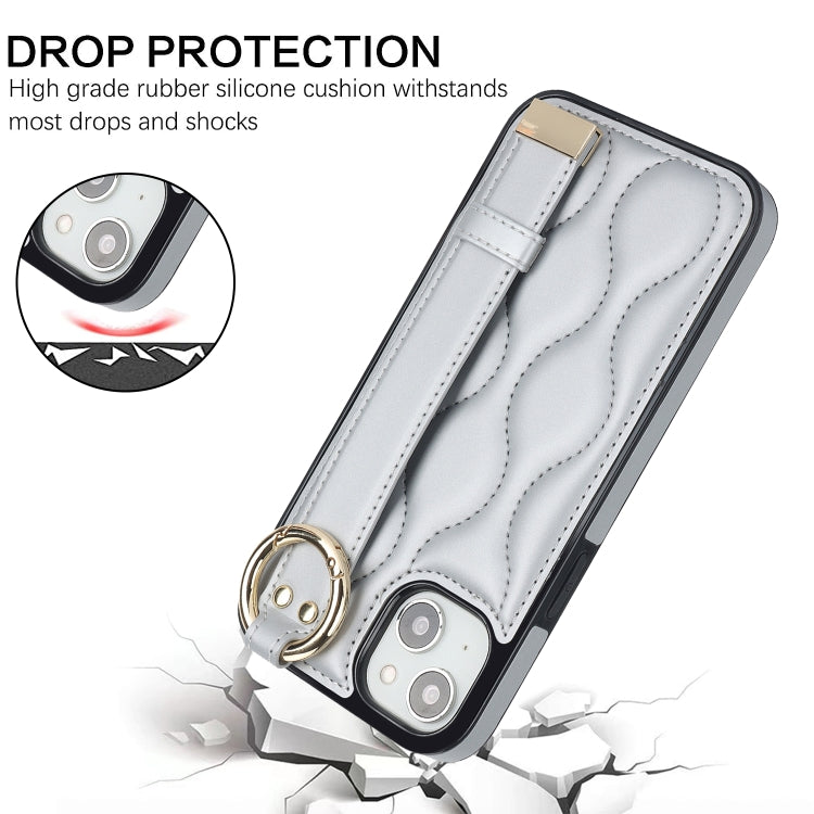 Funda para teléfono iPhone 14 Antideslizante Cobertura Completa Anillo PU con Muñequera (Plata)