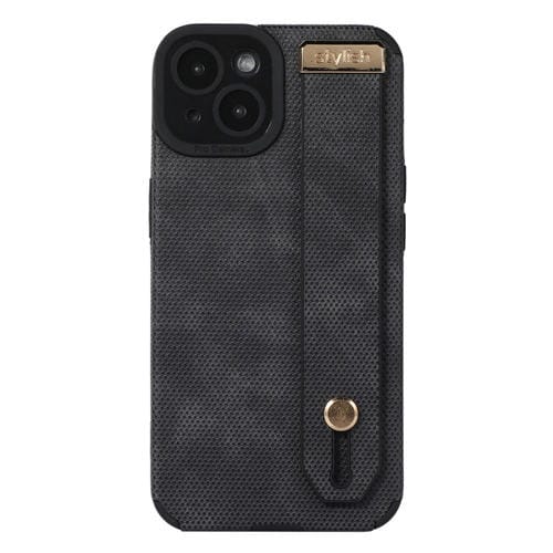 Correa de Muñeca TPU Funda de Cuero para Teléfono iPhone 14 (Negro)
