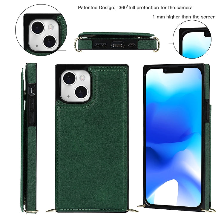 Funda para iPhone 14 Cross-Body Square Dual-Hebilla Tarjeta Flip Wallet Phone Case (Verde)