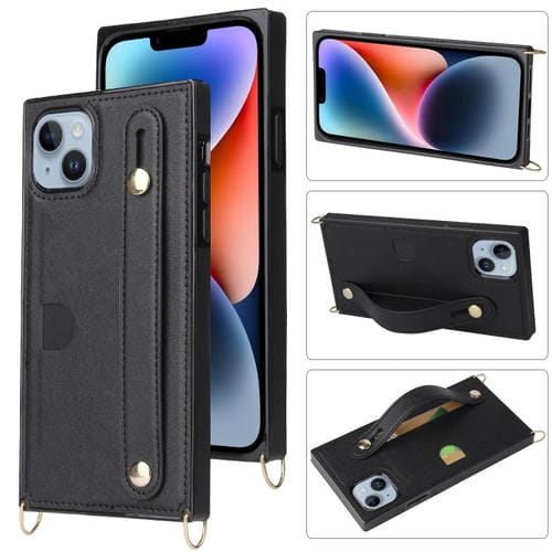 Funda Protectora para Teléfono iPhone 14 Crossbody Lanyard a Prueba de Golpes (Negro)