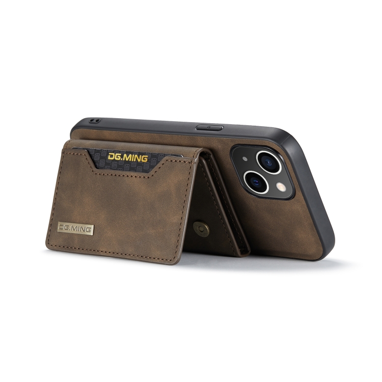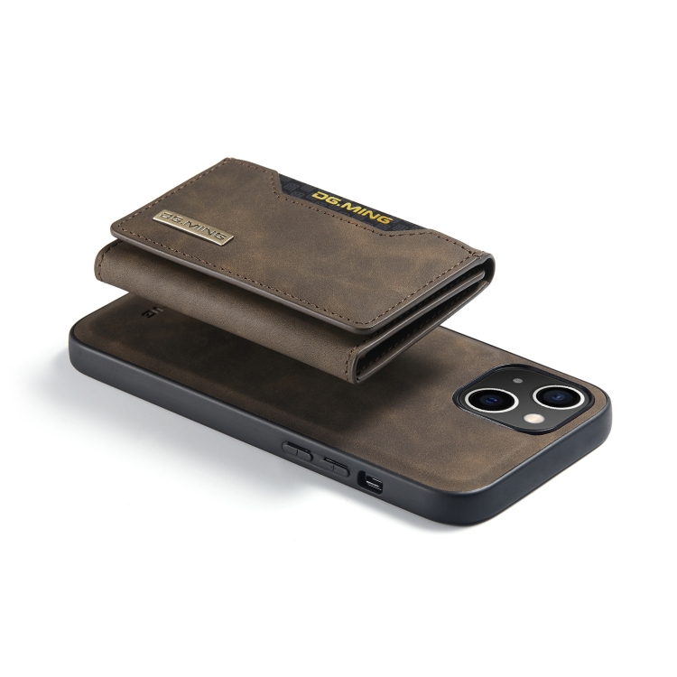 Estuche de Cuero Dg.Ming M2 Series para iPhone 14 con Bolsa de Tarjeta de 3 Pliegues (Café)