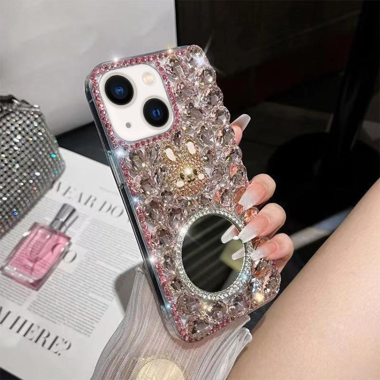 Funda para Teléfono iPhone 14 Diamond Mirror Bunny Hecha a Mano para PC (Espejo Rosa)