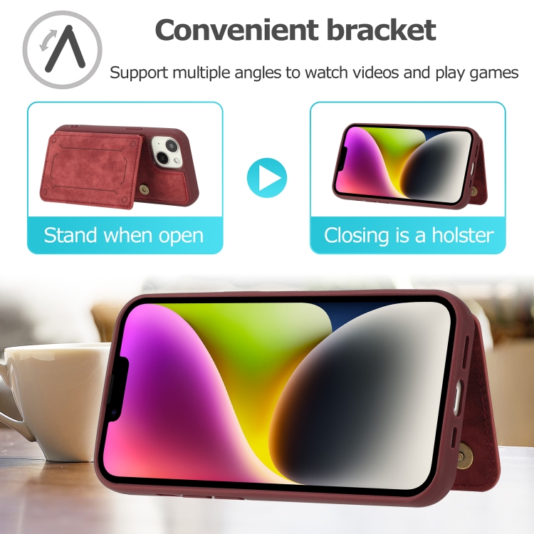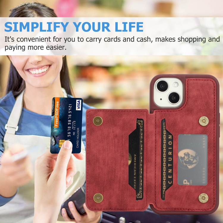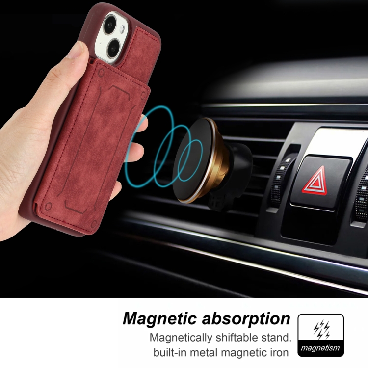 Funda para iPhone 14 Dream Magnetic Back Cover Card Wallet Phone Case (Rojo)