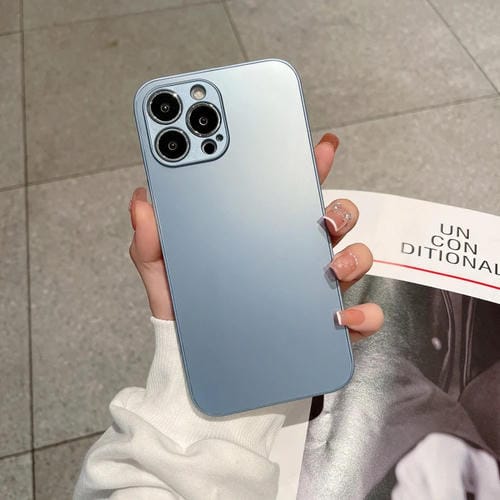 Estuche de teléfono para iPhone 14 vidrio templado esmerilado (Azul)