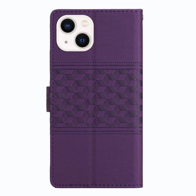 Estuche para Teléfono iPhone 14 Cuero Sensación de Piel En Relieve con Cordón (Púrpura)