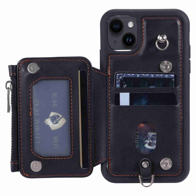 Estuche para Teléfono iPhone 14 Rfid con Ranuras para Tarjetas con Cremallera (Negro)