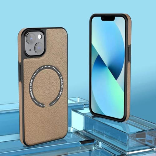 Funda Magnética de Cuero Magsafe para iPhone 14 (Beige)