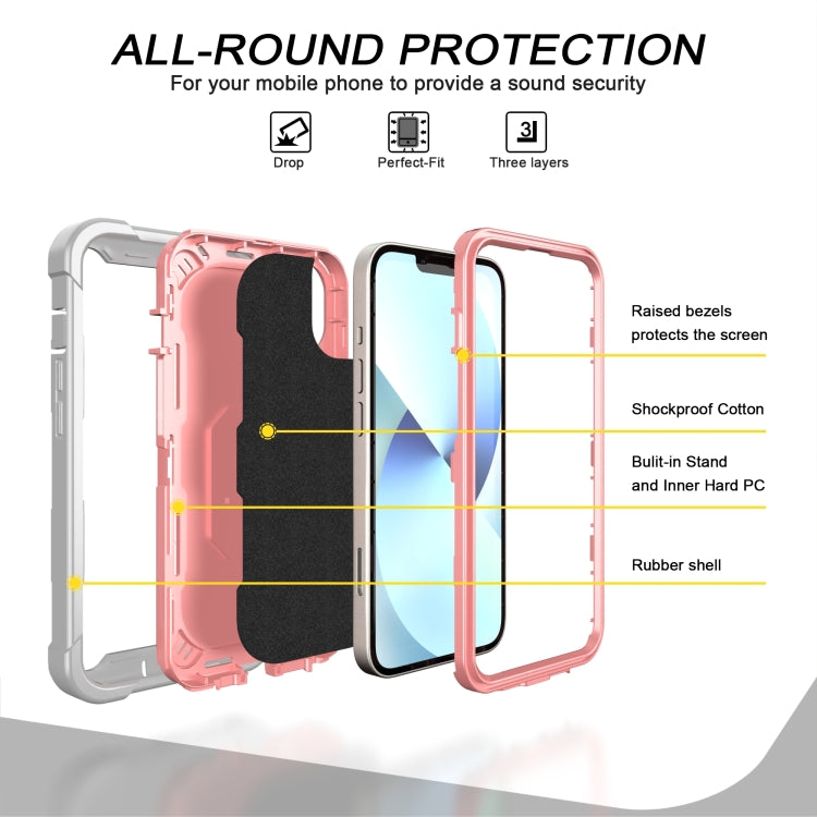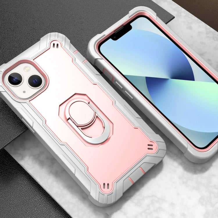 Funda para Teléfono iPhone 14 con Soporte de Anillo Dos Colores (Gris Blanco + Oro Rosa)