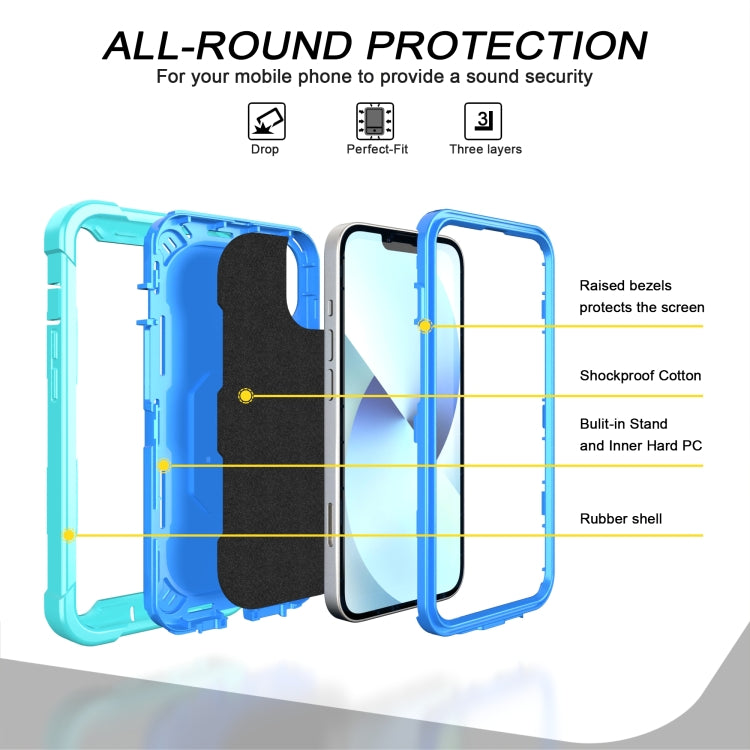 Funda para Teléfono iPhone 14 con Soporte de Anillo (Verde Menta + Azul)