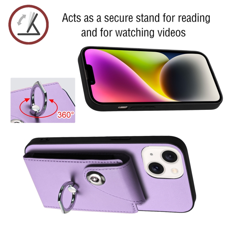 Funda para Teléfono iPhone 14 con Soporte para Anillo y Bolsa para Tarjeta de Órgano (Púrpura)