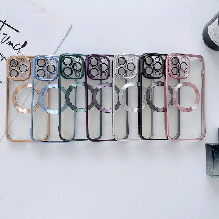 Caja de teléfono TPU Magnética Galvanizada para iPhone 14 Magsafe con Filtro de Polvo y Película de Lente (Plata)