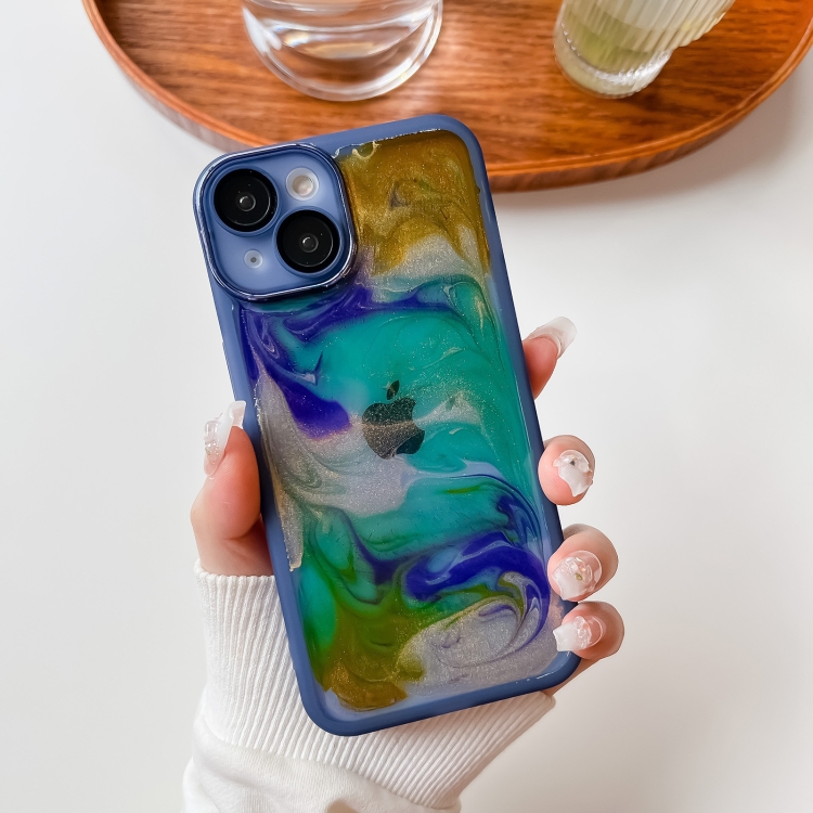 Funda para iPhone 14 TPU Pintura al Óleo Galvanoplastia (Azul)