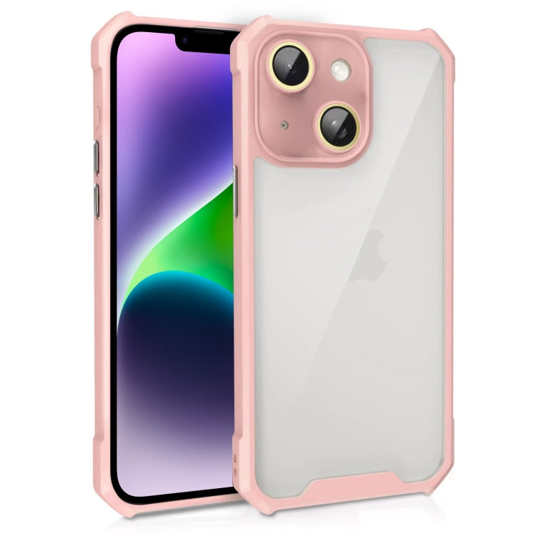 Estuche acrílico para iPhone 14 Plus a prueba de golpes con Película de vidrio para Lentes (Rosa)