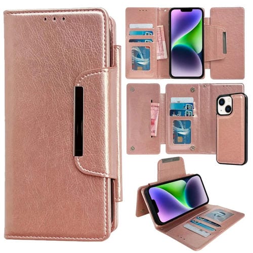 Funda para Teléfono iPhone 14 Plus Cuero con Billetera Multifuncional para 7 Tarjetas (Oro Rosa)