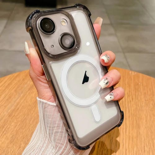 Funda para iPhone 14 Plus Magnética Magsafe Acrílico Transparente + TPU (Negro Transparente)