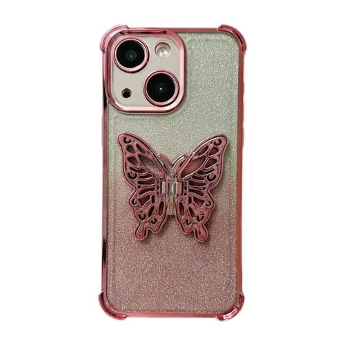 Funda para Teléfono TPU iPhone 14 Plus a Prueba de Golpes con Mariposa 3D y Purpurina Galvanizada (Rosa Degradado)