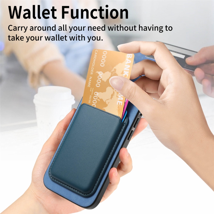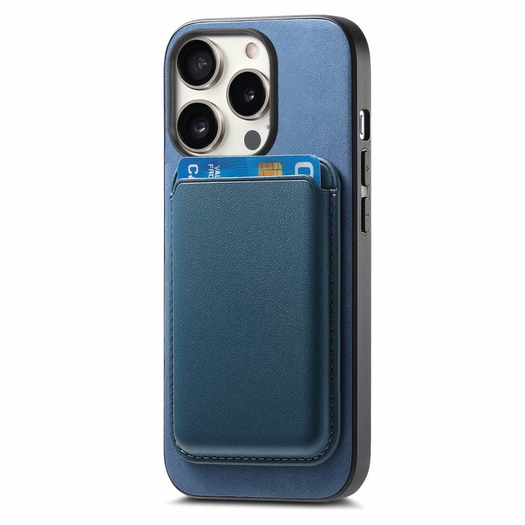 Funda para Teléfono iPhone 14 Plus Retro Magsafe Card Bag PU con Contraportada (Azul)
