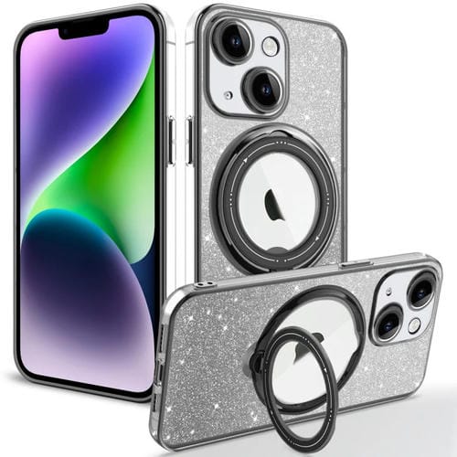 Estuche para Teléfono iPhone 14 Plus Rotación Magsafe Holder TPU Brillo Degradado (Negro)