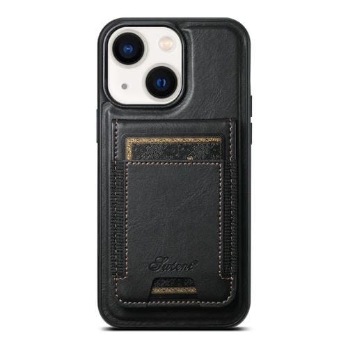 Funda para Teléfono Suteni H17 Oil Eax Leather Magsafe para iPhone 14 Plus con Billetera Desmontable (Negro)
