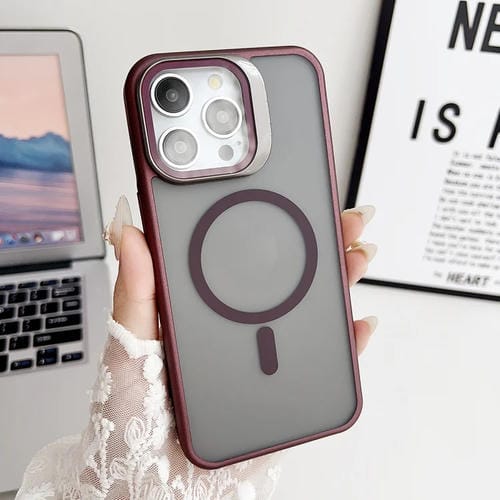 Funda para Teléfono iPhone 14 Pro J3 Magsafe Frame Bracket a Prueba de Golpes (Rojo Vino)