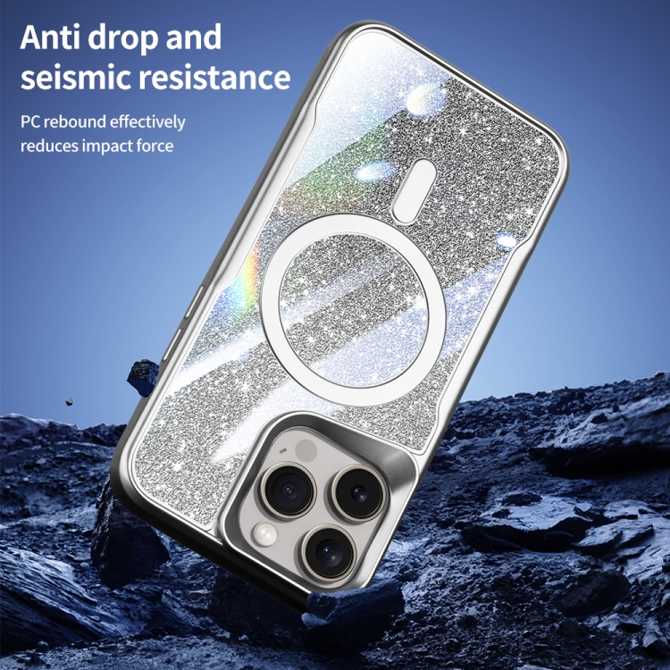 Estuche para Teléfono iPhone 14 Pro Max Blade Magsafe con Purpurina y Degradado Magnético para PC (Blanco Plateado)