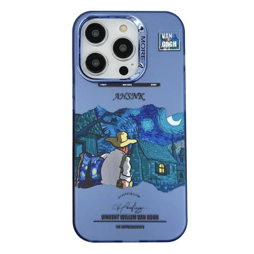 Estuche para teléfono iPhone 14 Pro Max con ilustración de Lente galvanizada (Azul)
