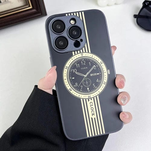 Estuche para Teléfono iPhone 14 Pro Max Protección de Lente Magnética Patrón de Reloj (Negro)