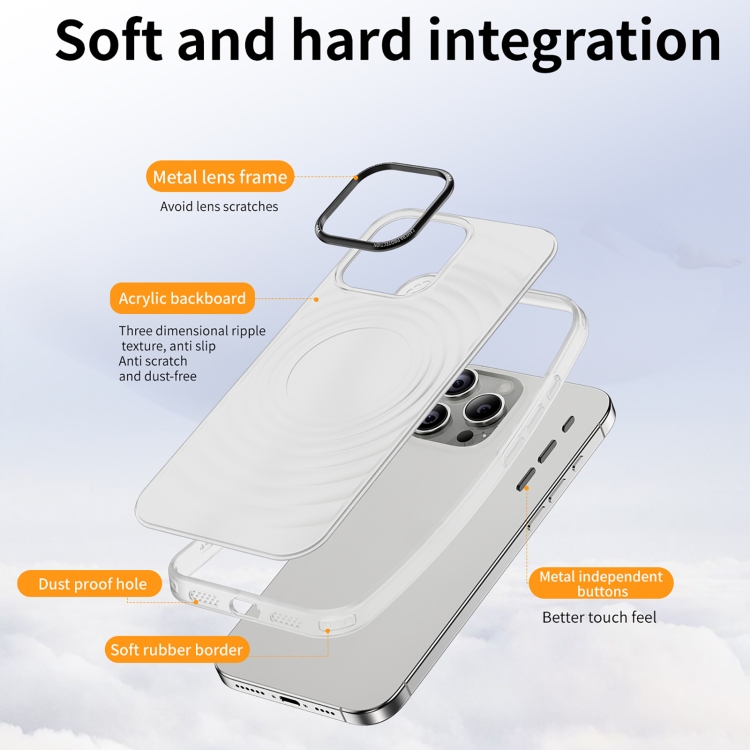 Estuche para Teléfono iPhone 14 Pro Max Corrugado con Sensación de Piel Acrílica (Blanco Transparente)