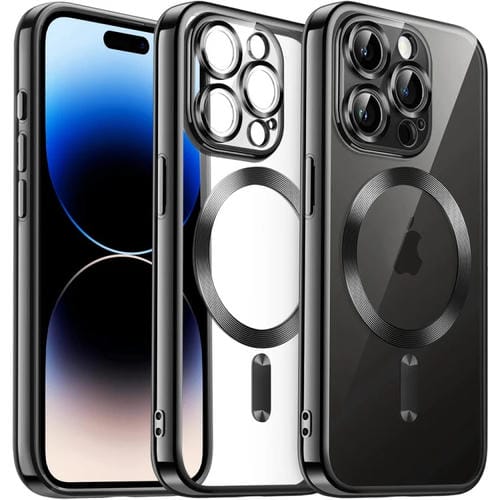 Funda para Teléfono TPU Galvanizada iPhone 14 Pro Max Transparente Magnética (Negro)