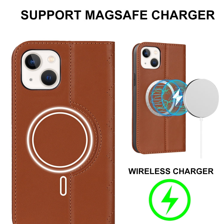 Funda para iPhone 14 Rhombic Magsafe Rfid Antirrobo de Cuero con Billetera (Marrón)