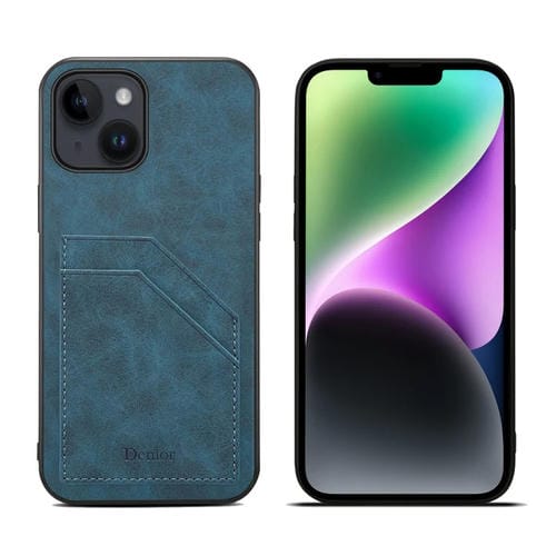 Funda para iPhone 15 Denior PU Ranura para Tarjeta Dual Contraportada (Azul)