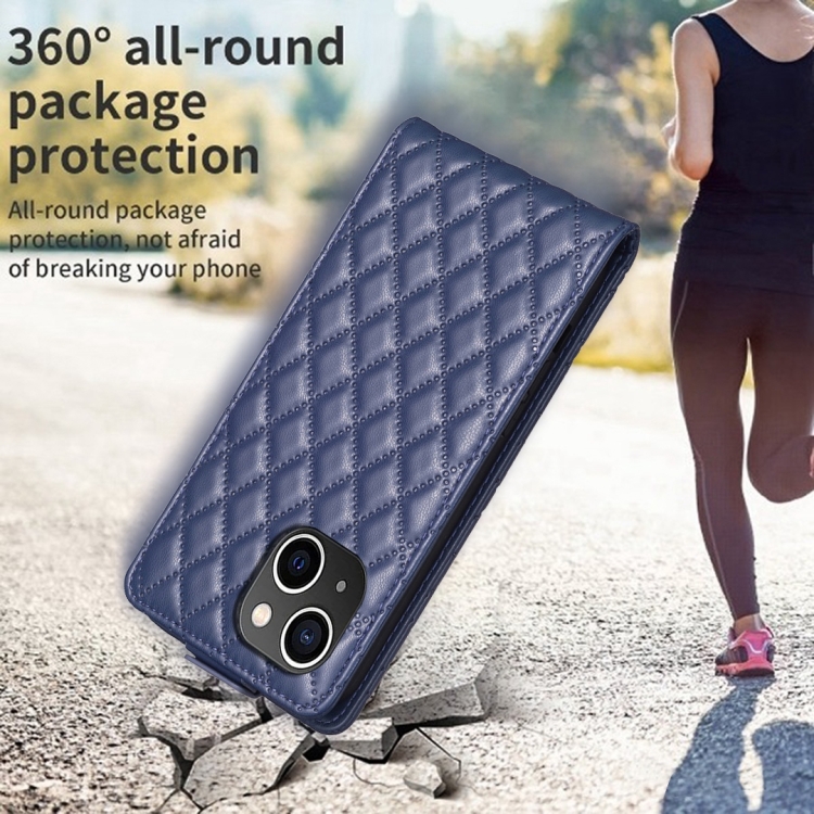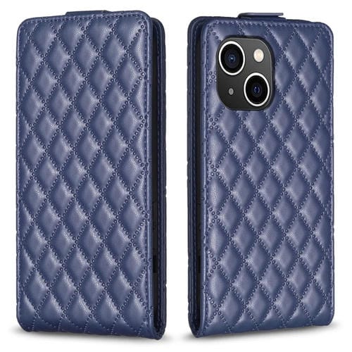 Funda para iPhone 15 Diamond Lattice Vertical Flip de Cuero para Teléfono (Azul)