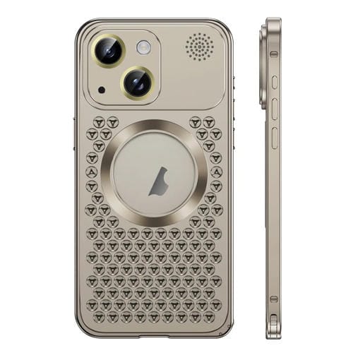Estuche para Teléfono iPhone 15 Metal Magnético Magsafe Aromaterapia Hebilla de Resorte (Gris)