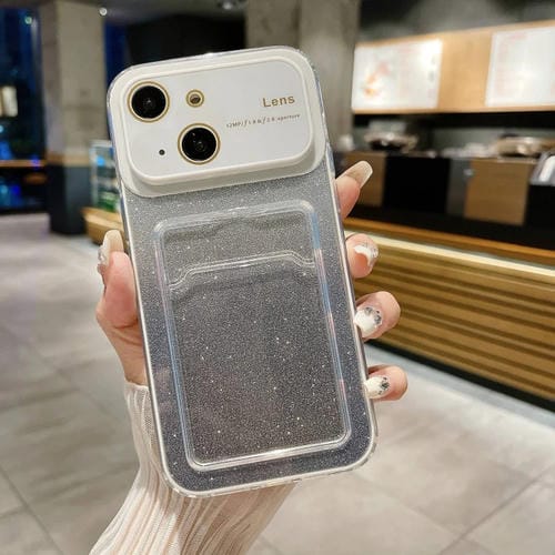 Estuche para Teléfono iPhone 15 con Brillo Degradado Ventana Grande y Ranura para Tarjeta (Blanco)
