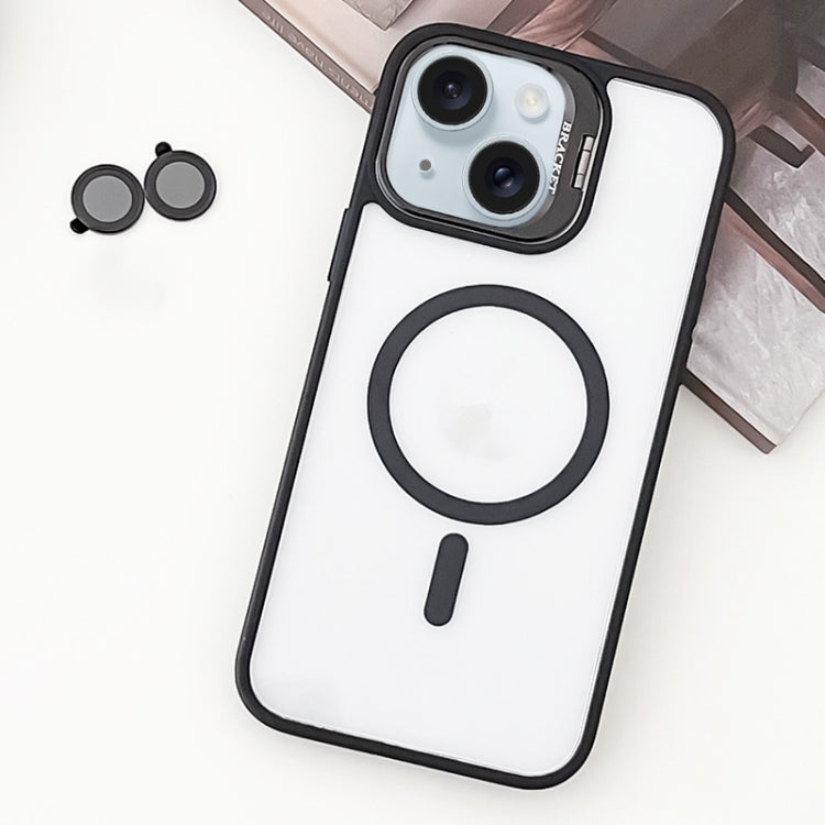 Estuche para teléfono iPhone 15 TPU híbrido acrílico con soporte Magsafe y Película para Lentes (Negro)