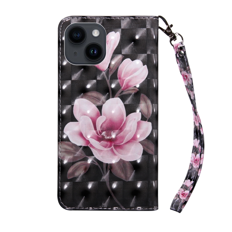 Funda de Cuero para iPhone 15 Pintada en 3D Flor Rosa