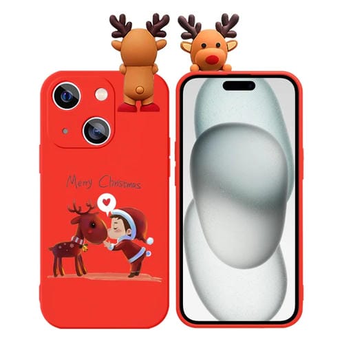 Funda de Teléfono TPU para iPhone 15 con Muñeco en Relieve de Ciervo y Dibujo Coloreado (Niño y Ciervo)