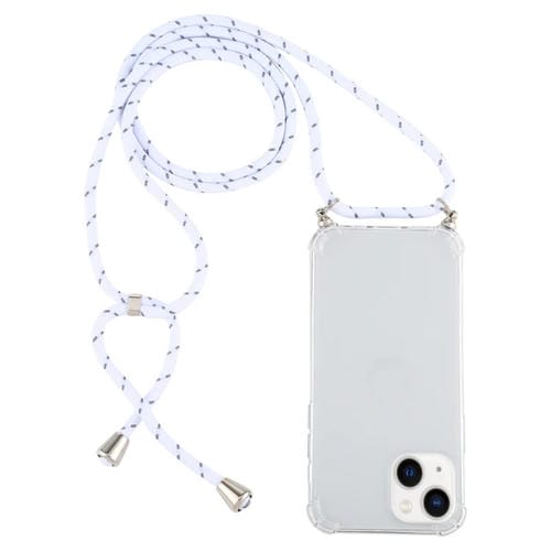 Funda TPU para iPhone 15 Transparente a Prueba de Golpes Cuatro Esquinas con Cordón (Gris Blanco)