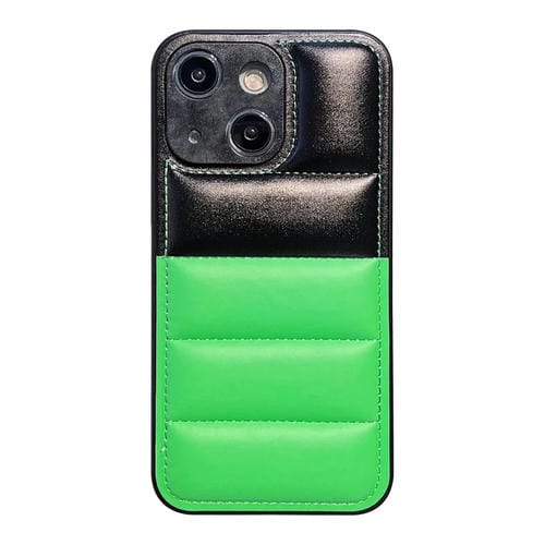 Funda para Teléfono iPhone 15 Chaqueta de Plumón Bloques de Color (Negro Verde)