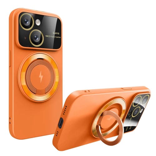 Funda para Teléfono iPhone 15 con Soporte Magnético Magsafe y Ventana Grande (Naranja)
