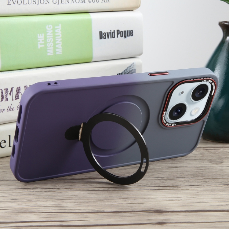 Funda para Teléfono iPhone 15 con Soporte Magsafe y Silicona Líquida Gradiente (Azul Morado)